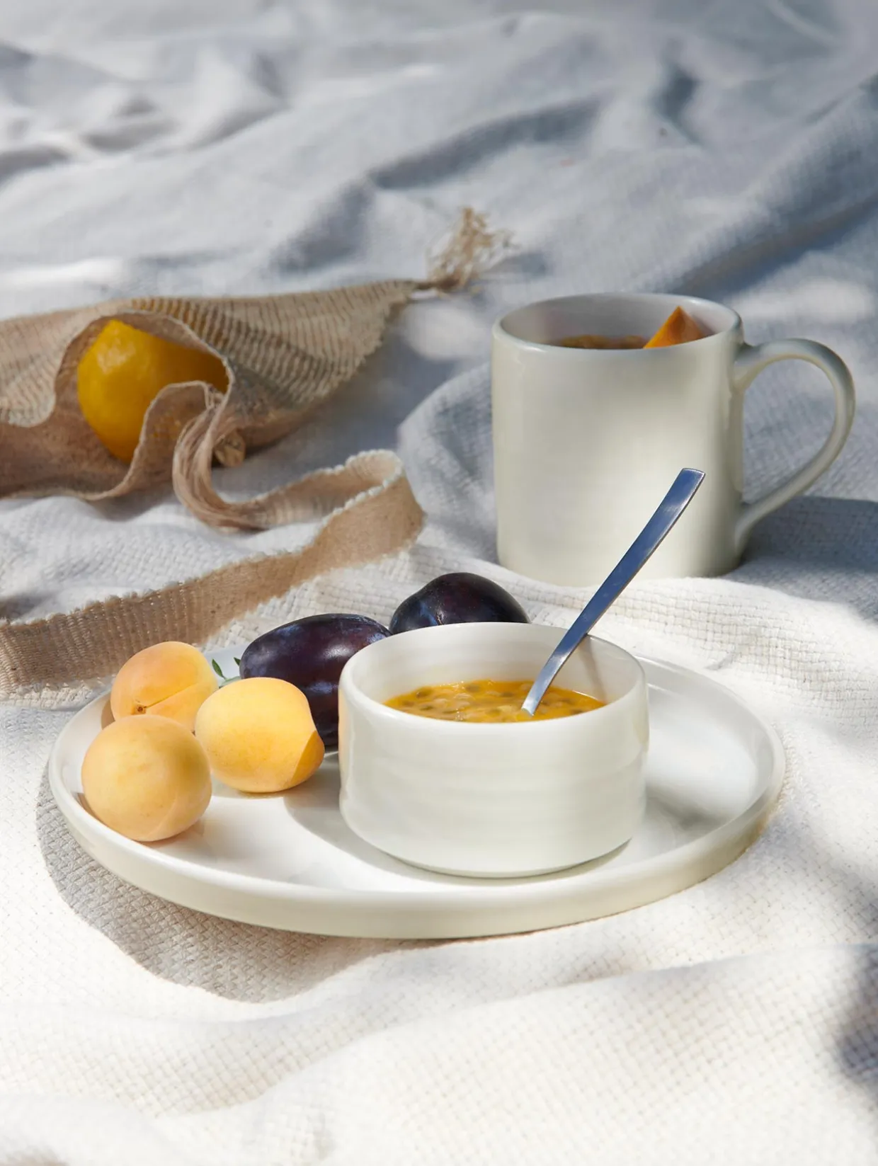 Dessertteller aus der Kollektion re:glaze. Wir haben Tonabfälle und überschüssige Glasuren vor der Entsorgung gerettet, aufbereitet und für die Herstellung dieses Geschirrs wiederverwendet. Das Ergebnis ist ein Steinzeug aus recyceltem Ton, kombiniert mit einer unverwechselbar weißen und zu 100% recycelten Glasur – wir nennen sie „Sparkling White“.