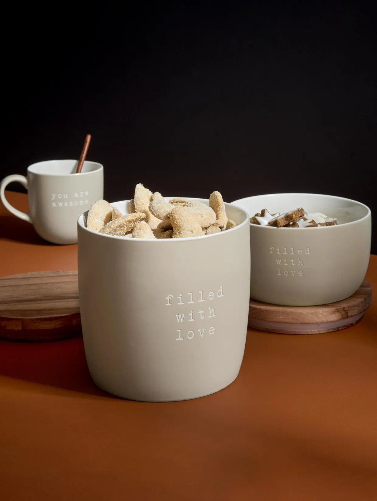 Vorratsdose mit Deckel aus Akazienholz. Die Hey! Kollektion kommuniziert in Form von sandgestrahlten Statements Botschaften, die für gute Laune sorgen. „filled with love“ lässt erahnen, was sich unter dem Akazienholzdeckel verbergen kann. Als Allrounder in zwei Größen eignen sich die „Hey!“ Dosen für frisch gebackene Plätzchen ebenso wie für Nüsse und andere Leckereien.