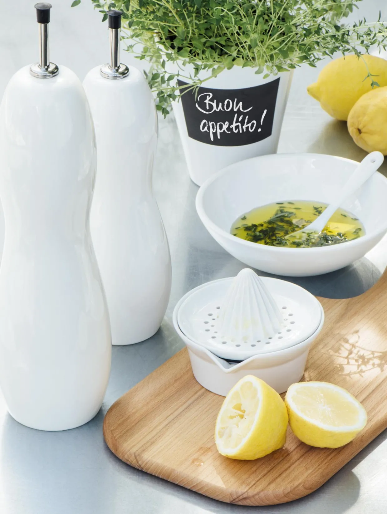 Frische Ideen: hochwertige Zitronenpresse, für den Tisch oder die Küche. Diese Zitronenpresse aus edlem, weißen Porzellan hat einen Durchmesser von 12 cm und eine Höhe von 9,5 cm. Das Füllvolumen von 0,2 Litern bietet reichlich Platz für frischen Zitronen- oder Orangensaft. Platzieren Sie diese wunderschöne Porzellan-Zitronenpresse direkt auf dem reichgedeckten Tisch – „nur“ für den Einsatz in der Küche ist sie fast zu schade!